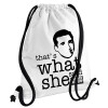 The office Michael That's what she said, Τσάντα πλάτης πουγκί GYMBAG λευκή, με τσέπη (40x48cm) & χονδρά κορδόνια