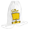 The Simpsons Bart, Τσάντα πλάτης πουγκί GYMBAG λευκή, με τσέπη (40x48cm) & χονδρά κορδόνια