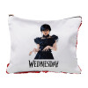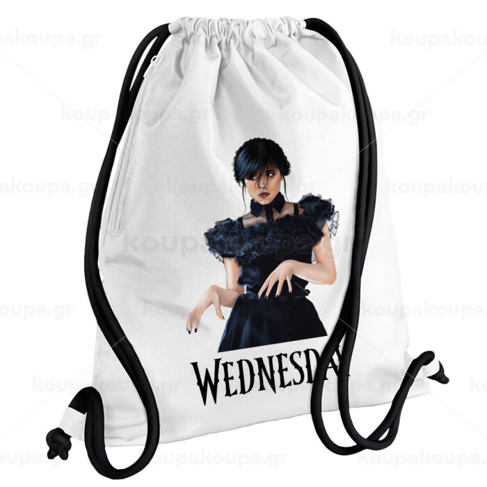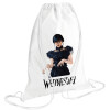 Wednesday Adams, dance with hands, Τσάντα πλάτης πουγκί GYMBAG λευκή, με τσέπη (40x48cm) & χονδρά κορδόνια