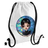 Wednesday big eyes, Τσάντα πλάτης πουγκί GYMBAG λευκή, με τσέπη (40x48cm) & χονδρά κορδόνια