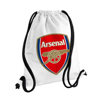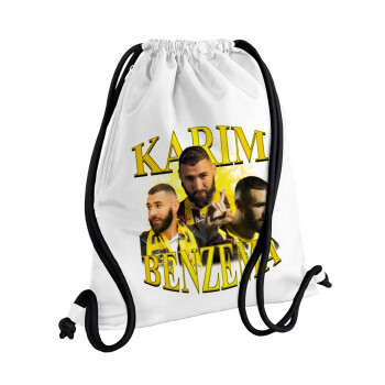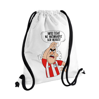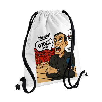 Τσάντα πλάτης πουγκί GYMBAG λευκή, με τσέπη (40x48cm) & χονδρά κορδόνια με θέμα Αθλητικά