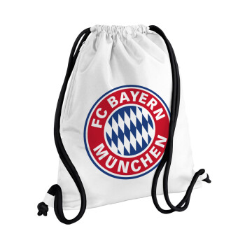 Τσάντα πλάτης πουγκί GYMBAG λευκή, με τσέπη (40x48cm) & χονδρά κορδόνια με θέμα Αθλητικά