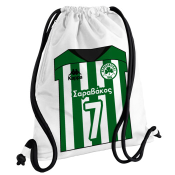 Παναθηναϊκός εμφάνιση, Τσάντα πλάτης πουγκί GYMBAG λευκή, με τσέπη (40x48cm) & χονδρά κορδόνια
