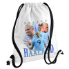 Erling Haaland, Τσάντα πλάτης πουγκί GYMBAG λευκή, με τσέπη (40x48cm) & χονδρά κορδόνια