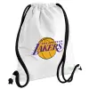 Lakers, Τσάντα πλάτης πουγκί GYMBAG λευκή, με τσέπη (40x48cm) & χονδρά κορδόνια