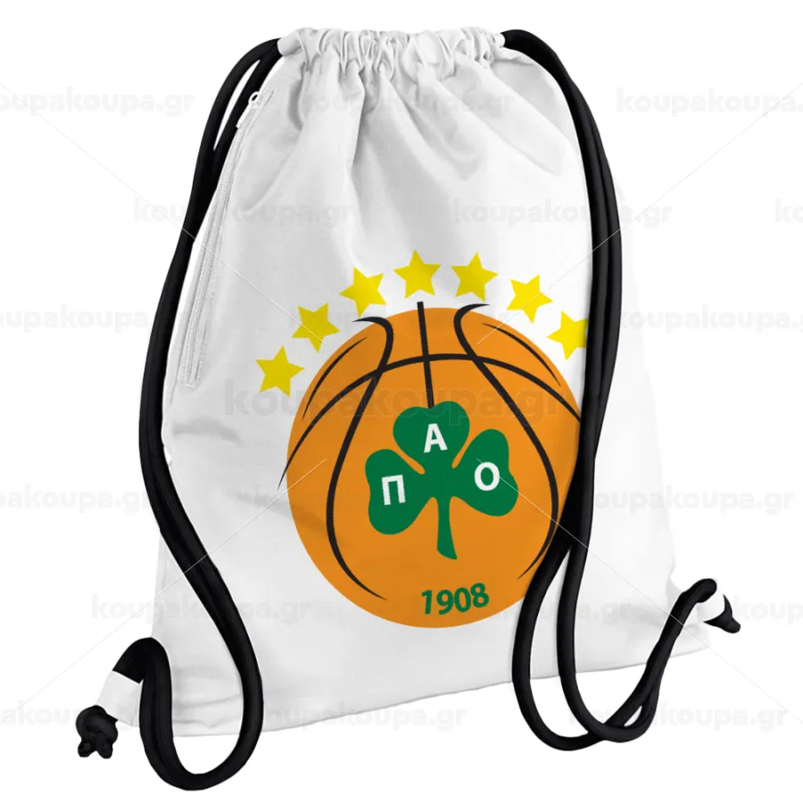 ΠΑΟ BC, Τσάντα πλάτης πουγκί GYMBAG λευκή, με τσέπη (40x48cm) & χονδρά κορδόνια