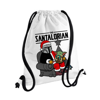 Τσάντα πλάτης πουγκί GYMBAG λευκή, με τσέπη (40x48cm) & χονδρά κορδόνια με θέμα Χριστούγεννα