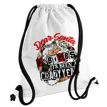 Dear Santa, sorry for all the F-bombs, Τσάντα πλάτης πουγκί GYMBAG λευκή, με τσέπη (40x48cm) & χονδρά κορδόνια