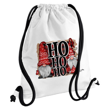 Ho ho ho, Τσάντα πλάτης πουγκί GYMBAG λευκή, με τσέπη (40x48cm) & χονδρά κορδόνια