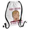 home alone, Merry Christmas ya filthy animal, Τσάντα πλάτης πουγκί GYMBAG λευκή, με τσέπη (40x48cm) & χονδρά κορδόνια