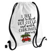 I just want to drink hot cocoa and watch christmas movies mini cooper, Τσάντα πλάτης πουγκί GYMBAG λευκή, με τσέπη (40x48cm) & χονδρά κορδόνια