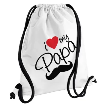I Love my papa, Τσάντα πλάτης πουγκί GYMBAG λευκή, με τσέπη (40x48cm) & χονδρά κορδόνια