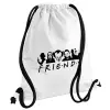 Halloween Friends, Τσάντα πλάτης πουγκί GYMBAG λευκή, με τσέπη (40x48cm) & χονδρά κορδόνια