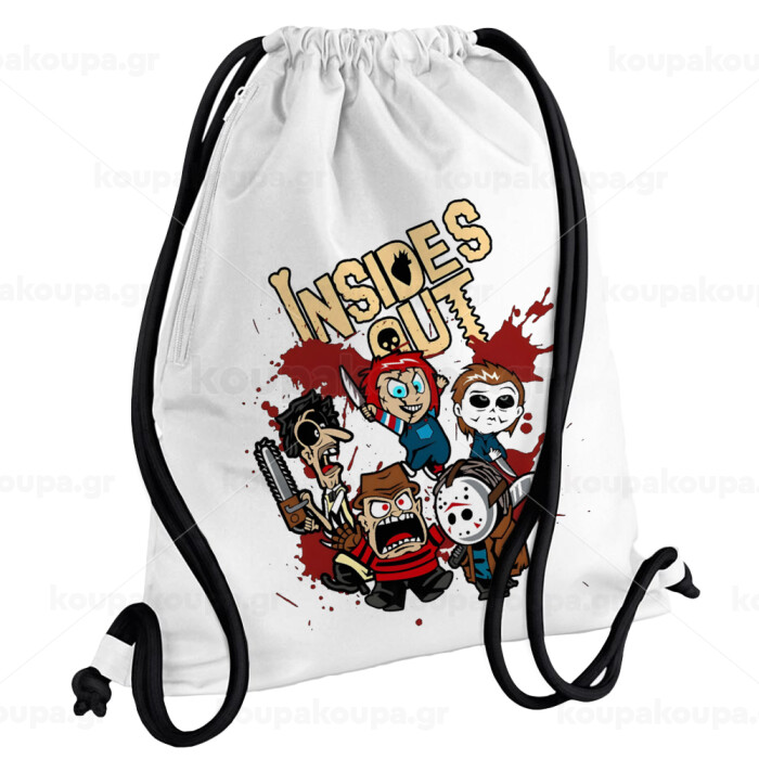 Halloween Inside out, Τσάντα πλάτης πουγκί GYMBAG λευκή, με τσέπη (40x48cm) & χονδρά κορδόνια