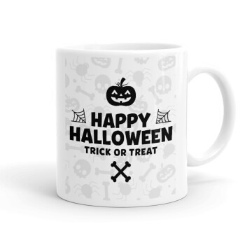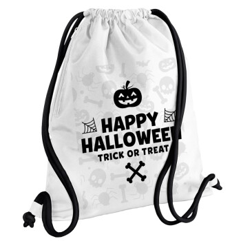 Happy Halloween pumpkin, Τσάντα πλάτης πουγκί GYMBAG λευκή, με τσέπη (40x48cm) & χονδρά κορδόνια