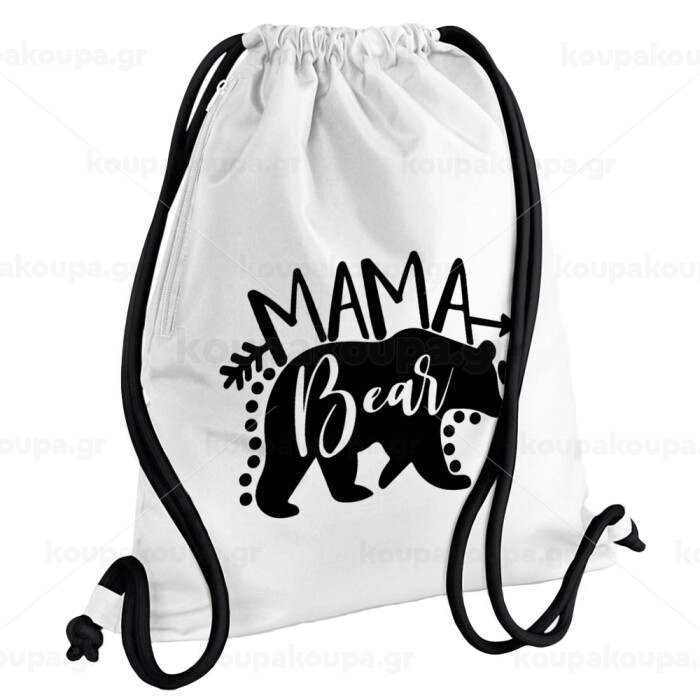 Mama Bear, Τσάντα πλάτης πουγκί GYMBAG λευκή, με τσέπη (40x48cm) & χονδρά κορδόνια