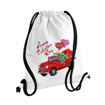 Τσάντα πλάτης πουγκί GYMBAG λευκή, με τσέπη (40x48cm) & χονδρά κορδόνια με θέμα Αγάπη, ερωτευμένοι