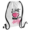 I Just want a hug!, Τσάντα πλάτης πουγκί GYMBAG λευκή, με τσέπη (40x48cm) & χονδρά κορδόνια