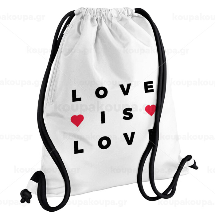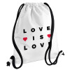 Love is Love, Τσάντα πλάτης πουγκί GYMBAG λευκή, με τσέπη (40x48cm) & χονδρά κορδόνια