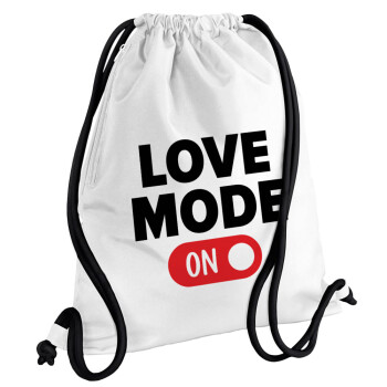 LOVE MODE ON, Τσάντα πλάτης πουγκί GYMBAG λευκή, με τσέπη (40x48cm) & χονδρά κορδόνια