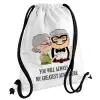 UP, YOU WILL ALWAYS BE MY GREATEST ADVENTURE, Τσάντα πλάτης πουγκί GYMBAG λευκή, με τσέπη (40x48cm) & χονδρά κορδόνια