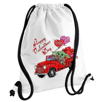 Yoda, happy valentines day (xoxo), Τσάντα πλάτης πουγκί GYMBAG λευκή, με τσέπη (40x48cm) & χονδρά κορδόνια