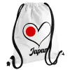 Japan flag, Τσάντα πλάτης πουγκί GYMBAG λευκή, με τσέπη (40x48cm) & χονδρά κορδόνια