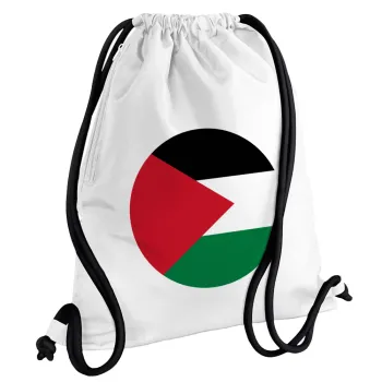 Σημαία Παλαιστίνης, Τσάντα πλάτης πουγκί GYMBAG λευκή, με τσέπη (40x48cm) & χονδρά κορδόνια