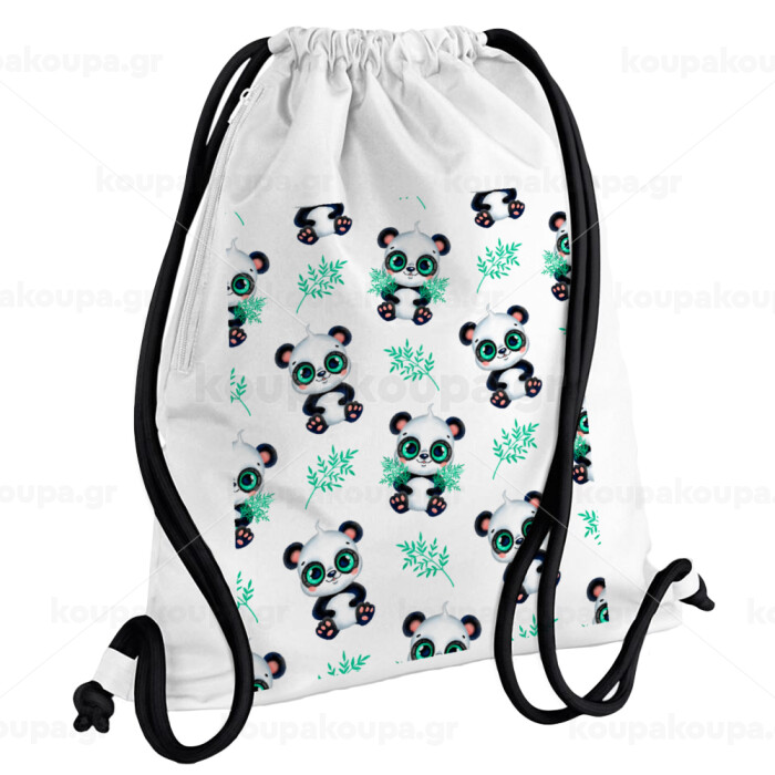 Panda, Τσάντα πλάτης πουγκί GYMBAG λευκή, με τσέπη (40x48cm) & χονδρά κορδόνια
