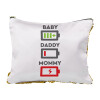 BABY, MOMMY, DADDY Low battery, Τσάντα πλάτης πουγκί GYMBAG λευκή, με τσέπη (40x48cm) & χονδρά κορδόνια