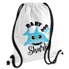 Baby Shark (boy), Τσάντα πλάτης πουγκί GYMBAG λευκή, με τσέπη (40x48cm) & χονδρά κορδόνια
