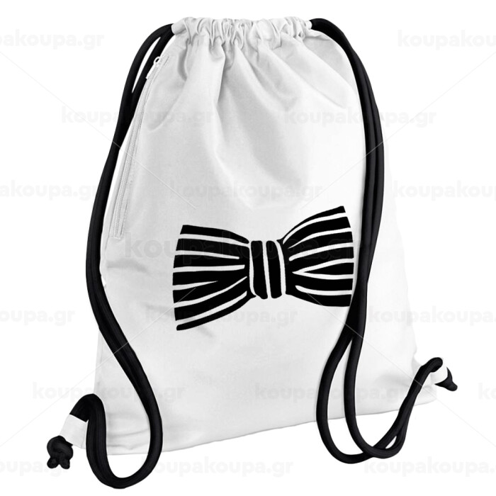 Bow tie, Τσάντα πλάτης πουγκί GYMBAG λευκή, με τσέπη (40x48cm) & χονδρά κορδόνια