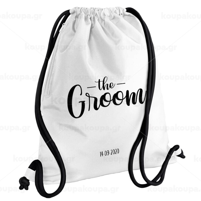 Groom & Bride (Groom), Τσάντα πλάτης πουγκί GYMBAG λευκή, με τσέπη (40x48cm) & χονδρά κορδόνια