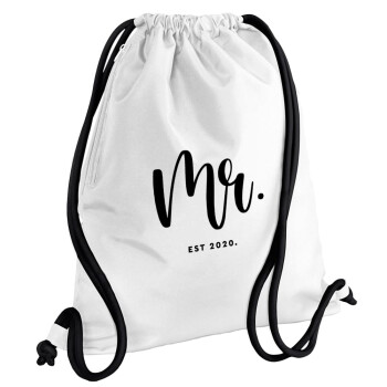 Mr & Mrs (Mr), Τσάντα πλάτης πουγκί GYMBAG λευκή, με τσέπη (40x48cm) & χονδρά κορδόνια
