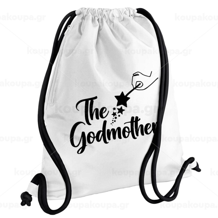 Fairy God Mother, Τσάντα πλάτης πουγκί GYMBAG λευκή, με τσέπη (40x48cm) & χονδρά κορδόνια