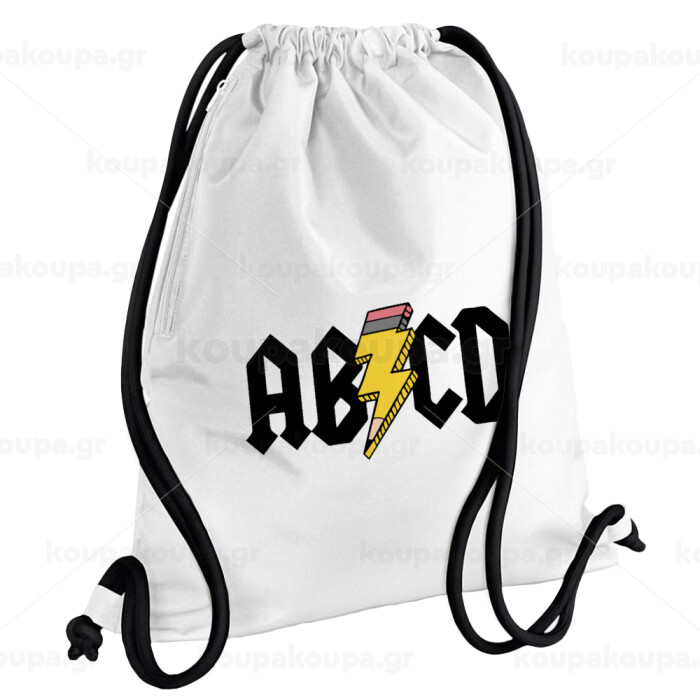 ABCD, Τσάντα πλάτης πουγκί GYMBAG λευκή, με τσέπη (40x48cm) & χονδρά κορδόνια
