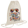 School's Out For Summer Teacher Life, Τσάντα πλάτης πουγκί GYMBAG λευκή, με τσέπη (40x48cm) & χονδρά κορδόνια
