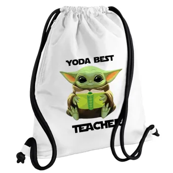 Yoda Best Teacher, Τσάντα πλάτης πουγκί GYMBAG λευκή, με τσέπη (40x48cm) & χονδρά κορδόνια