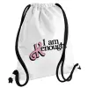 Barbie, i am Kenough, Τσάντα πλάτης πουγκί GYMBAG λευκή, με τσέπη (40x48cm) & χονδρά κορδόνια