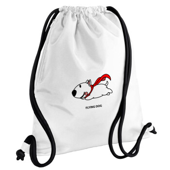 Flying DOG, Τσάντα πλάτης πουγκί GYMBAG λευκή, με τσέπη (40x48cm) & χονδρά κορδόνια