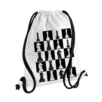 Τσάντα πλάτης πουγκί GYMBAG λευκή, με τσέπη (40x48cm) & χονδρά κορδόνια με θέμα Gaming