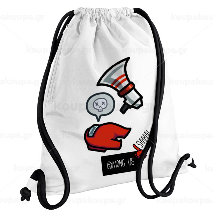Among US Shhhh!!!, Τσάντα πλάτης πουγκί GYMBAG λευκή, με τσέπη (40x48cm) & χονδρά κορδόνια