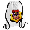Brawl Stars Ruffs, Τσάντα πλάτης πουγκί GYMBAG λευκή, με τσέπη (40x48cm) & χονδρά κορδόνια