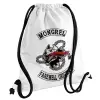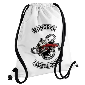 Day's Gone, mongrel farewell original, Τσάντα πλάτης πουγκί GYMBAG λευκή, με τσέπη (40x48cm) & χονδρά κορδόνια