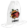 Fortnite Durr Burger, Τσάντα πλάτης πουγκί GYMBAG λευκή, με τσέπη (40x48cm) & χονδρά κορδόνια
