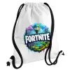 Fortnite land, Τσάντα πλάτης πουγκί GYMBAG λευκή, με τσέπη (40x48cm) & χονδρά κορδόνια