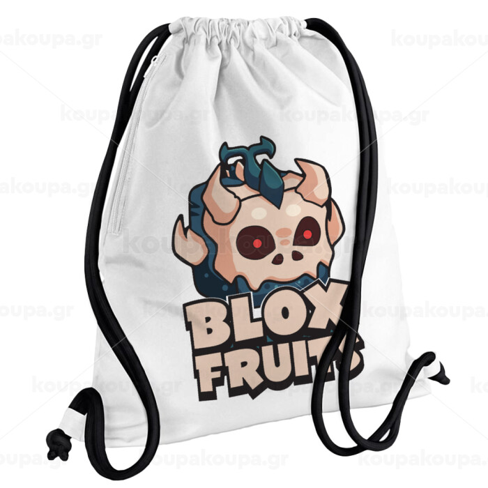 Roblox Blox Fruits, Τσάντα πλάτης πουγκί GYMBAG λευκή, με τσέπη (40x48cm) & χονδρά κορδόνια