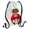 Super mario head, Τσάντα πλάτης πουγκί GYMBAG λευκή, με τσέπη (40x48cm) & χονδρά κορδόνια