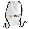 Bitcoin Crypto, Τσάντα πλάτης πουγκί GYMBAG λευκή, με τσέπη (40x48cm) & χονδρά κορδόνια