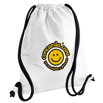 Concarda, Τσάντα πλάτης πουγκί GYMBAG λευκή, με τσέπη (40x48cm) & χονδρά κορδόνια